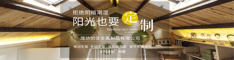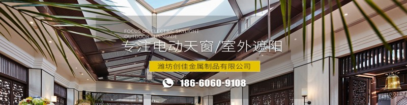 创佳金属制品有限公司是一家主要生产电动天窗、室内遮阳、室外遮阳等产品的厂家。地址位于潍坊市临朐县东城街道黄山路黄山建材城。潍坊创佳金属制品有限公司有从设计、制作、安装到售后服务的人才。公司制定了一整套科学的、严谨的、实用的企业标准来管理和监督产品的工艺和质量,并坚持精益求精,以良好的服务面向客户。企业秉持:“优良质量,诚信服务”的经营理念,坚持“团结、敬业、 奉献”的精神。潍坊创佳金属制品有限公司愿与您共同营造温馨家园,合作共赢,共同进步。